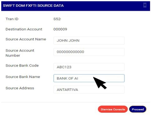 - Swift FXFTI records with Source account details will show options to “view source account and “Edit source account”.