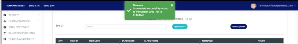 - A notification will be displayed at the Top when Source account data is successfully added. See Fig. 31.2av below.