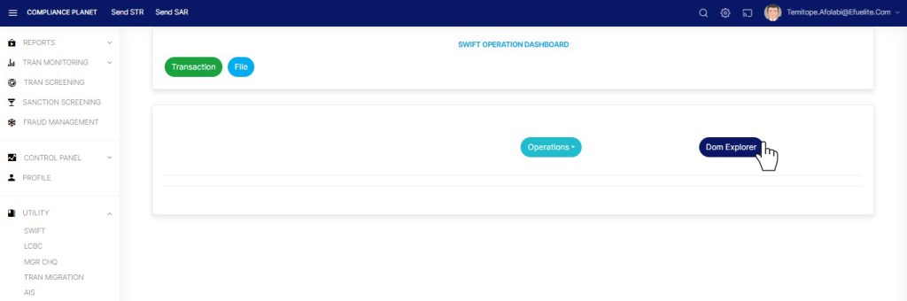 STEP 2: Click on ‘Dom Explorer’ button on the Swift Operation page. See Fig 31.2b for an example