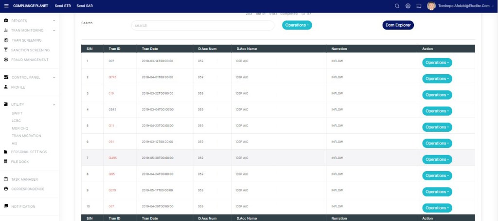 - Transactions with transaction ID coloured blue signify that the source account details has been added to the transaction hence, the schema is complete.