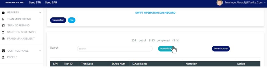 STEP 1: Click on the Operations button on the Swift Transaction page. See Fig 31.3i for an example