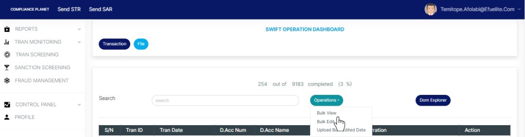 Note: You need to be assigned right to ‘view SWIFT DOM transactions’ and ‘Bulk Edit SWIFT DOM transactions’ to carry out this operation.