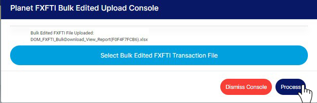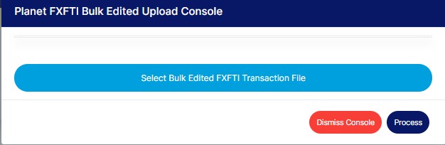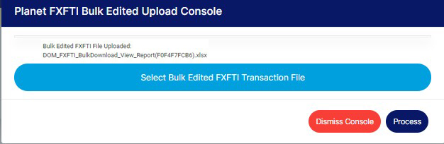 - This displays a ‘Planet FXFTI Bulk Edited Upload Console’ as in Fig31.3k below.