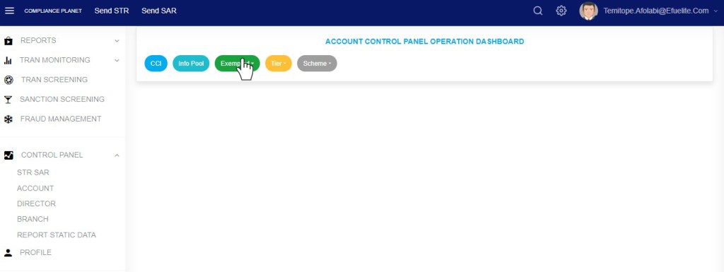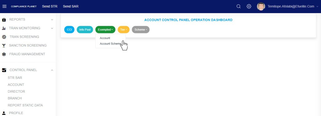 - This will display the ACCOUNT CONTROL PANEL OPERATIONS dashboard as in Fig 17.2c below