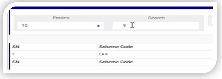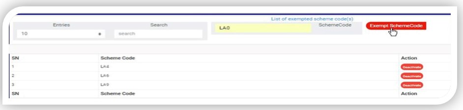 - Type a scheme code in the search box to search for an exempted scheme code. See an example of a search in fig. 17.2h below.