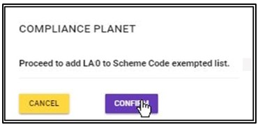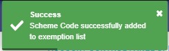 STEP 3: Click on ‘CONFIRM’ to add the account scheme to the exemption list or ‘CANCEL’ to discontinue. If you proceed, a notification will be displayed at the top of the page. See fig. 17.3d for an example.