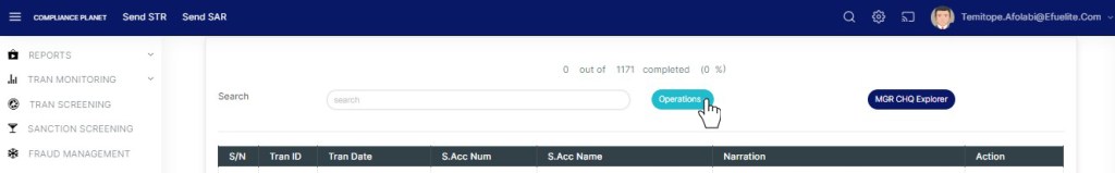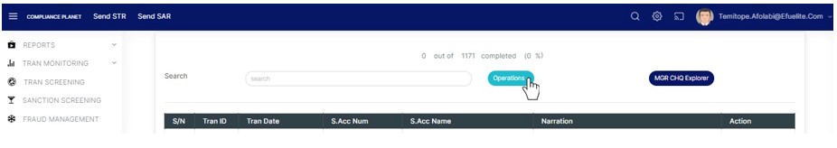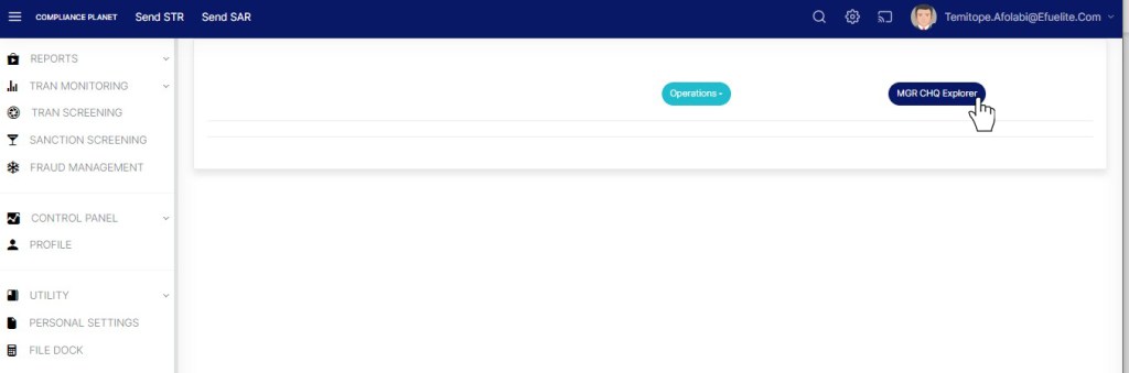 STEP 1: Click on the “Operations” button at the top of the MANAGER’s CHEQUE explorer page.