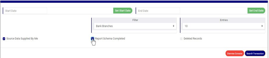 - Select ‘Report Schema Completed’ to see list of Manager’s cheque transactions whose report schema is complete