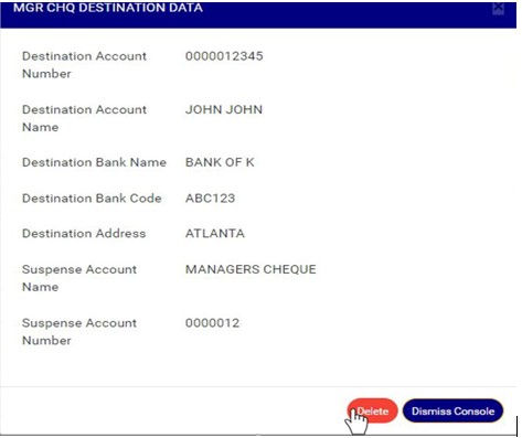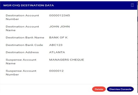 A. How to View and Delete Destination Account Attach to a MANAGER’s CHEQUE Transaction