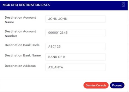 How to carry Out Destination Account Operations on MANAGER’S CHEQUE transaction