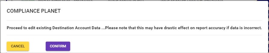 - A notification will be displayed at the top of the page when edited destination account data is saved successfully. See Fig 33.2v below