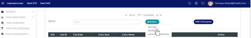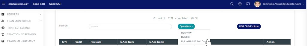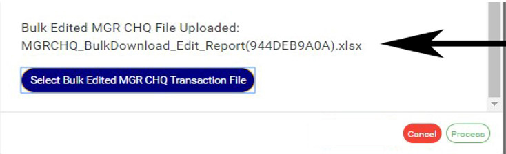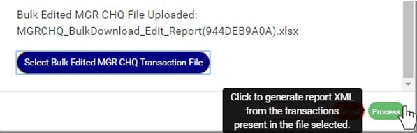 On the MGR CHQ operations page you can make a bulk upload of Edited Manager’s Cheque Transaction records.
