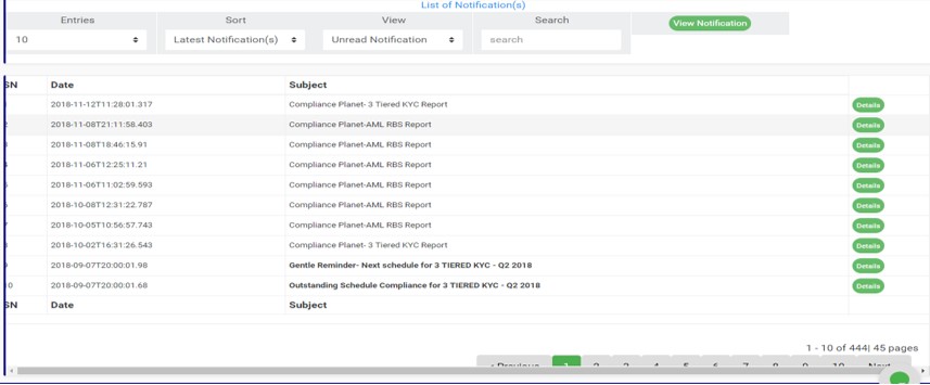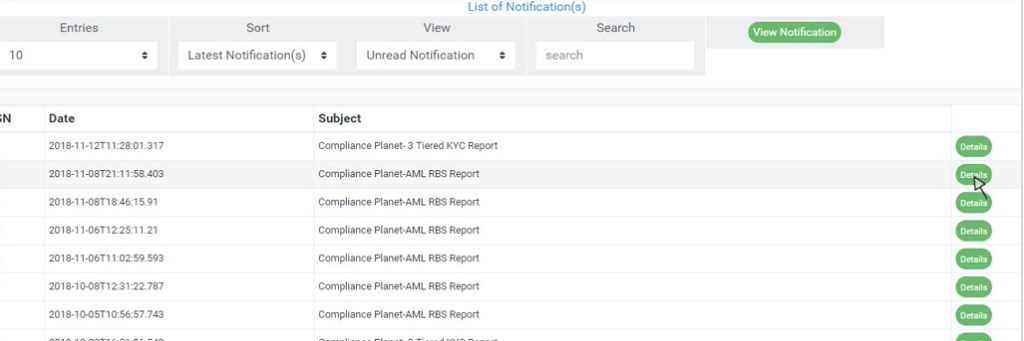 This feature houses notifications generated by the Compliance planet software when a report is processed successfully. These notifications are also sent to the mail of the user.