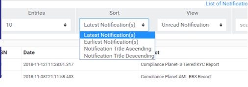 You can sort the notifications to be seen from the latest notification (oldest notification) to the earliest notification (newest notifications) or vice-versa. Specify the order of the list by clicking on the ‘Sort’ box as in fig. 35.1d. The default view is from the latest to the earliest.