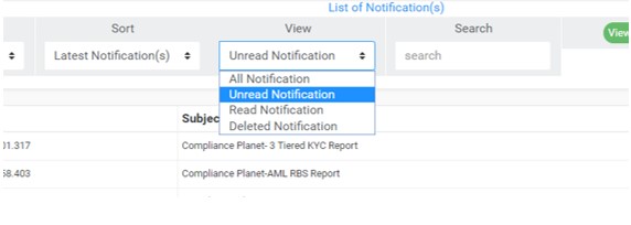 Select the notifications to be displayed by clicking the ‘View’ box as in fig. 35.1e. The categories of notifications available are; Unread notification, Read notification, Deleted notification and All notifications. The Unread category is the default view on landing on the page.