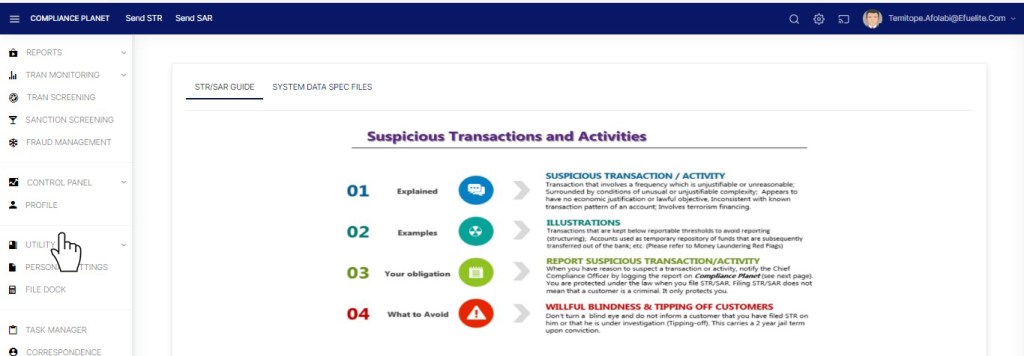 From the left-hand side menu, click ‘UTILITY’ as in fig. 34.1a below