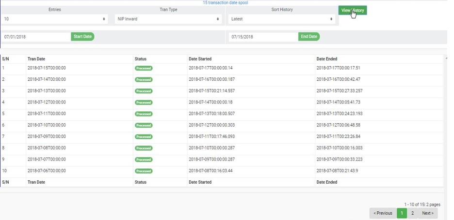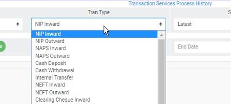 STEP 2: Select the transaction type which you want to view it’s service operations history from the ‘Tran Type’ box as shown in fig. 34.2c below. The default transaction type is NIP Inward.