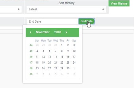 - You can sort the entries to be seen from the latest to the earliest or vice-versa. Specify the order of the list by clicking on the ‘Sort History’ box as in fig. 34.2i below. The default view is from the latest to the earliest.