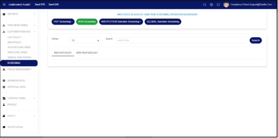 The BVN screening helps to scan an institution for a match, it further tells if the search parameter(BVN) has already been profiled under the BVN Watchlist in the system or not by displaying the account(s) that the BVN is tied to.