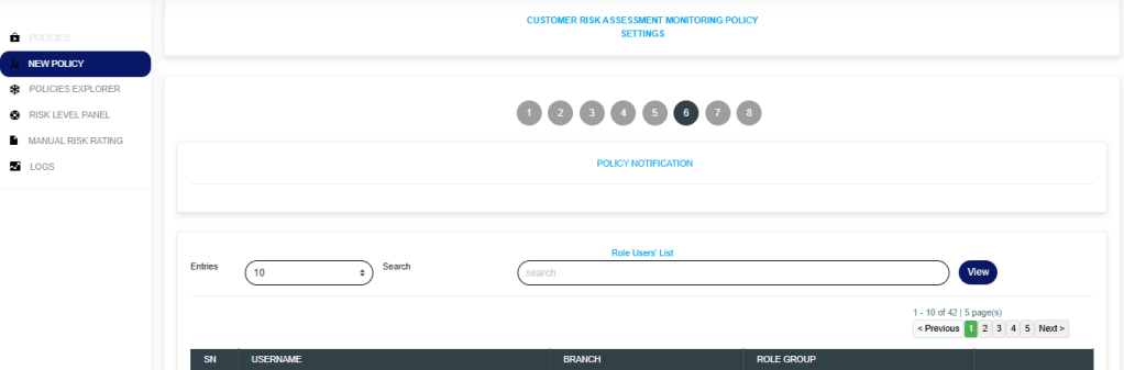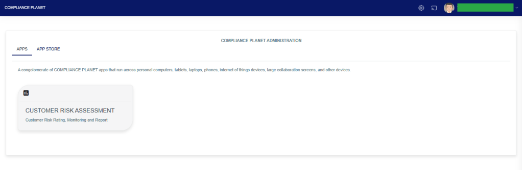 STEP 1: From the app dashboard, click “CUSTOMER RISK ASSESSMENT” as in image below.