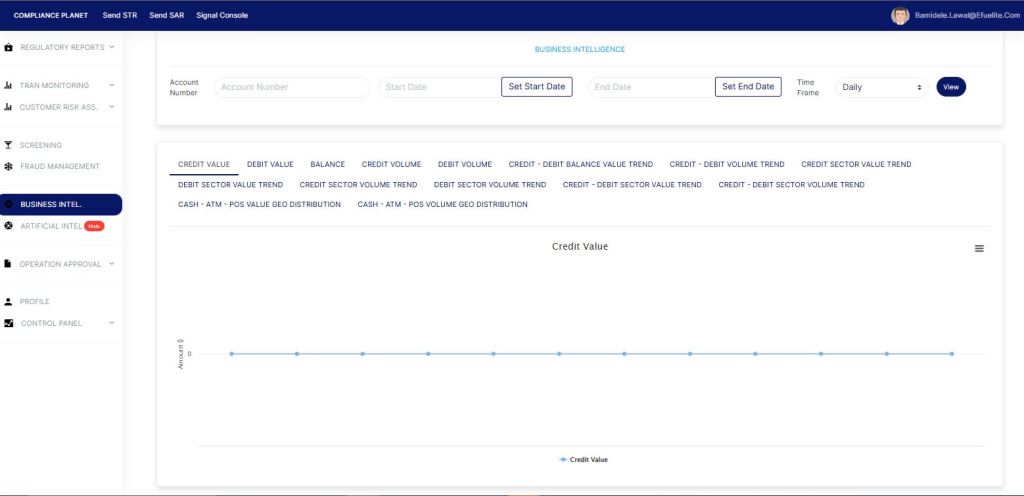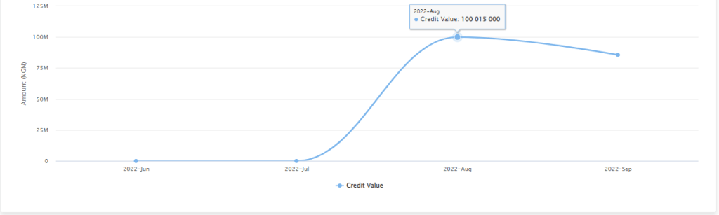 CREDIT VALUE: This is a value-based Line graph trend type gives a graphical representation of an account’s inflows value across a specified period.
