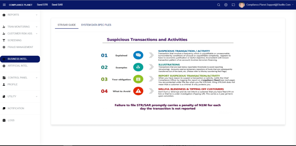 The business intelligence helps to give insight through a graphical representation of customers transaction trend across a specified period.