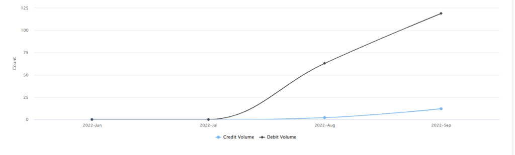 DEBIT VOLUME: This is a volume(counts) based Line graph trend type that gives a graphical representation of an account’s outflows volume(counts) across a specified period.