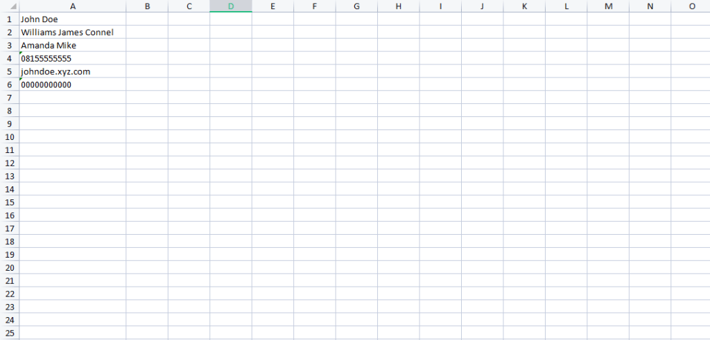 STEP 1: Open an excel sheet as seen in the image below. This must be the first sheet(Sheet1) in the excel workbook.