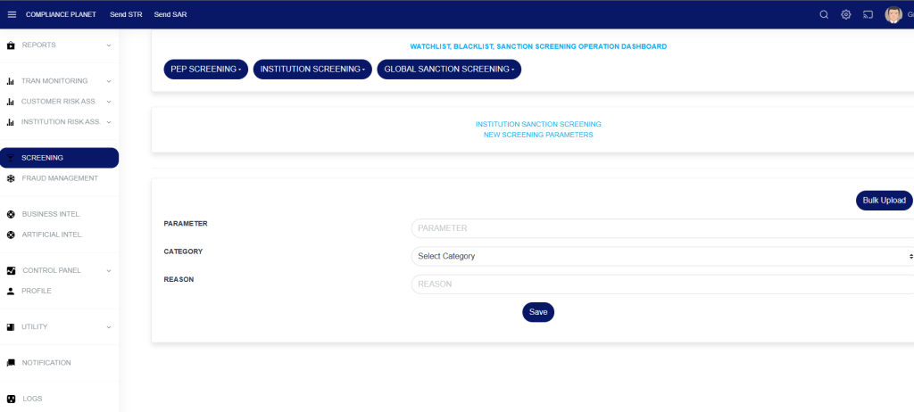 STEP 7: On the NEW SCREENING PARAMETERS page, click on the “Bulk Upload” button to select the excel file which you have earlier filled with the scan parameters.