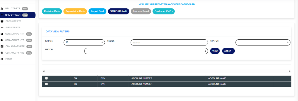 Click “NFIU STR/SAR” from the drop-down menu to open the NFIU STR/SAR page. See the image below.