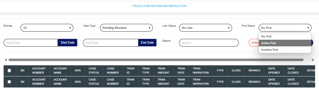 PND Status: Click on the “PND” drop-down to filter and select either active or inactive PND.