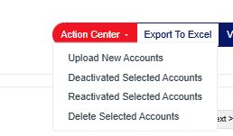 To do a bulk upload of new accounts, deactivate account(s), reactivate account(s), and delete account(s). This can be done using the “Action Center” option as in Fig 2d below.
