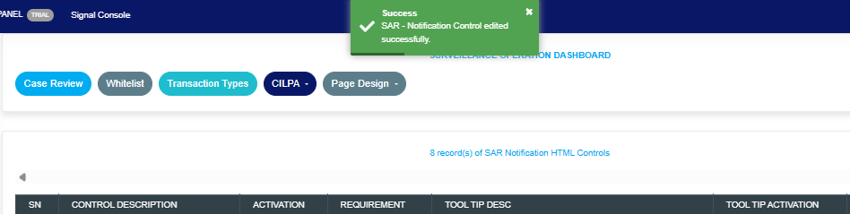 This section provides a guide on how to execute the SAR notification HTML controls on the Compliance Planet, with step-by-step instructions and pictures.