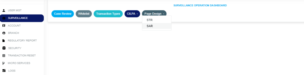 STEP 2: Select ‘SURVEILLANCE’ on the drop-down list and click on “Page Design“. See an example in Fig. 21.1b below.