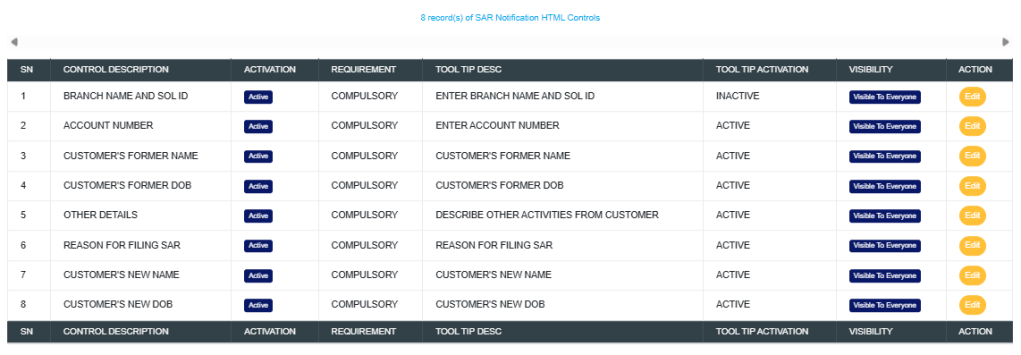 - This displays a page showing a list of all ‘‘SAR Notification HTML Control’’ options that have been created and are available on the software. See Fig. 21.1d for an example.