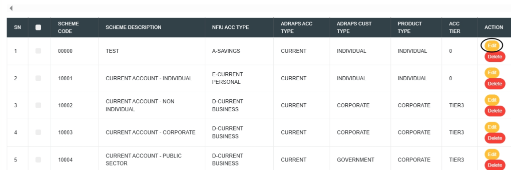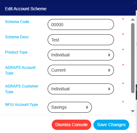 - STEP 1:To edit the Account Scheme, click on the Edit console. This will display a page as shown in Fig.2.3f