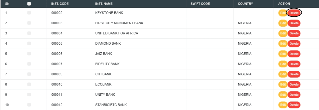 - A notification will be displayed at the top of the page, as shown in Fig. 2.2d below, and the record will be deleted from the list.