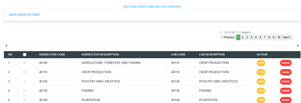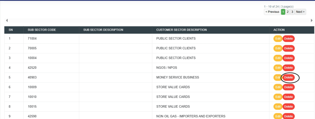 - A notification will be displayed at the top of the page, as in Fig.2.6i below, showing that the Subsector has been successfully deleted.