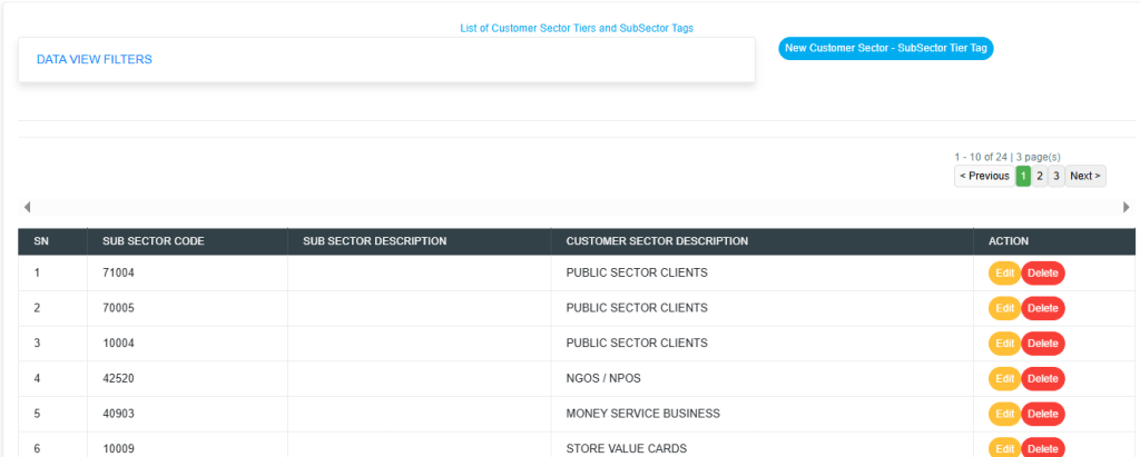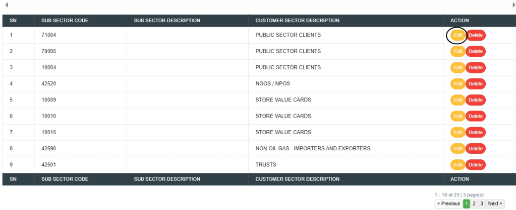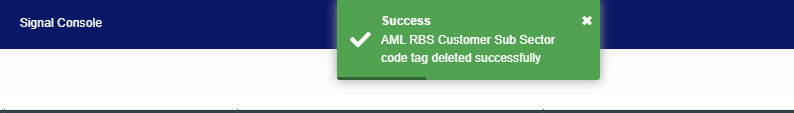 - A notification will be displayed at the top of the page, as in Fig.2.3c below, showing that the customer sector code tag has been successfully edited.