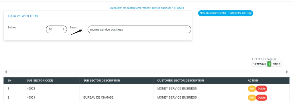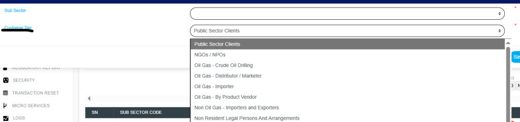 - Note that the sub-sector search box and the customer tier search box must be filled accordingly.