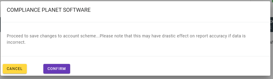 - A notification will be displayed at the top of the page, as in Fig.2.4a below, showing that the account scheme has been successfully edited.