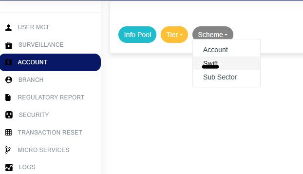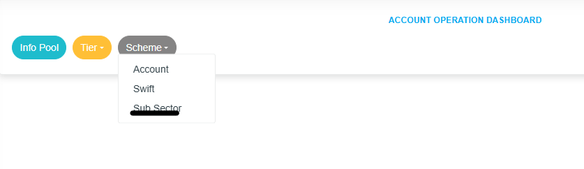 - Click on the “Scheme” in the Account Operation Dashboard page to display a list of drop-downs as shown in Fig.2.3d, then click on Account.