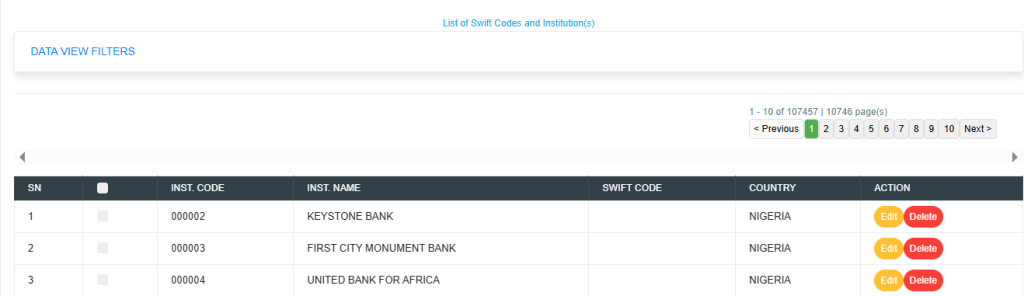 Click on the “Entries” box as in Fig. 2.1d below to select the number of records you want to view per page.