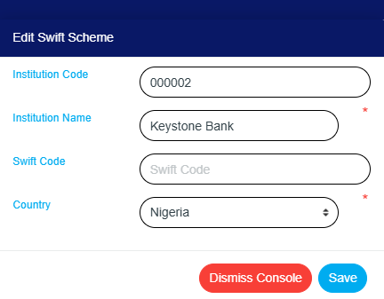 - To edit the Swift Scheme, click on the Edit console. This will display a page as shown in Fig.2.4h