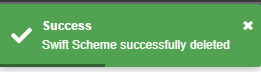 - A notification will be displayed at the top of the page, as shown in Fig. 2.5g below, indicating that the Swift scheme has been successfully deleted.
