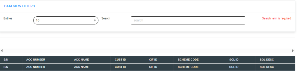 Click on the Data View Filters option to display the entries and search box as shown in Fig.2.1g below.
