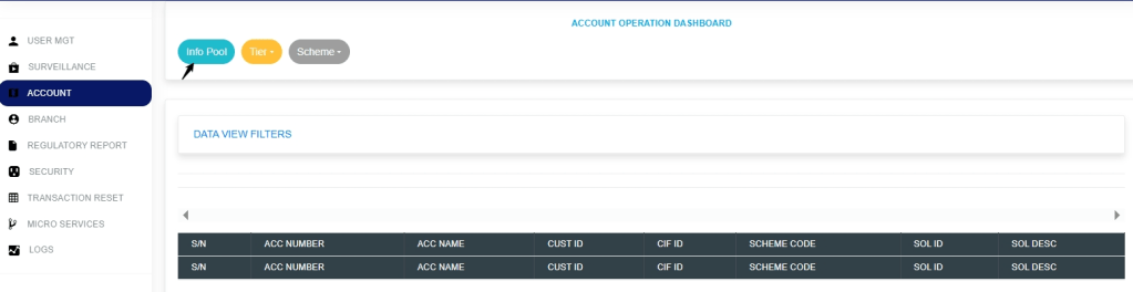 - STEP 3: Click on ‘Info Spool’ from the account operation dashboard page, as shown in Fig.2.1a below.