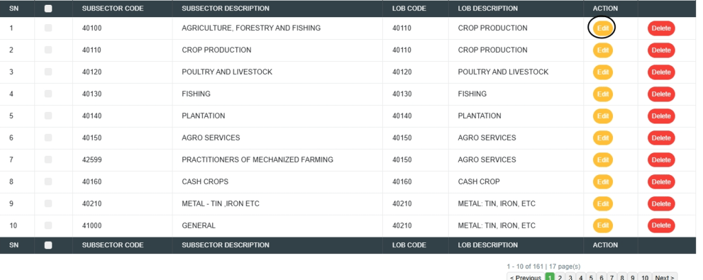 - To edit the Subsector, click on the Edit console. This will display a page as shown in Fig.2.6c