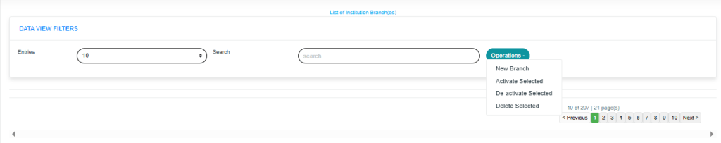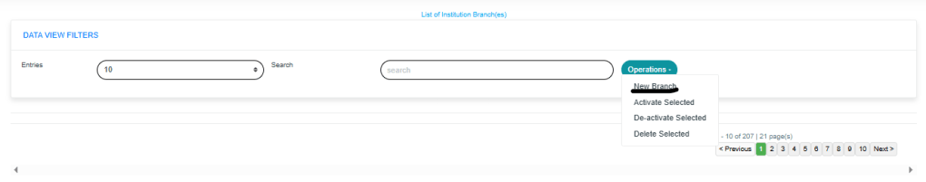 Click on the “operations” drop-down to select from the list of branch operations you want to view, as shown in Fig.3.1d below.