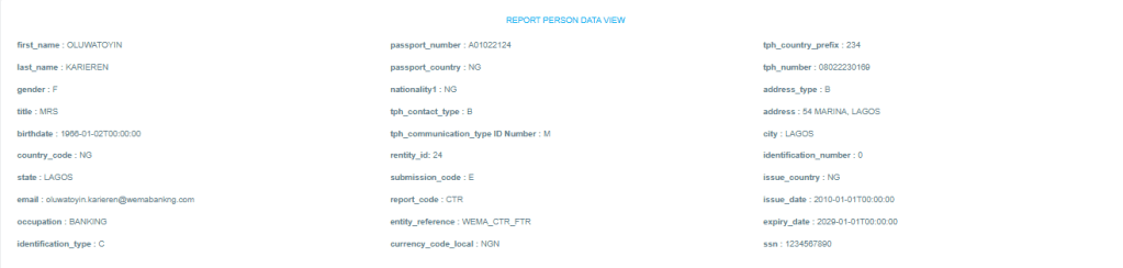 - Note that the Report Person Data View page contains all the necessary information to file a regulatory report.